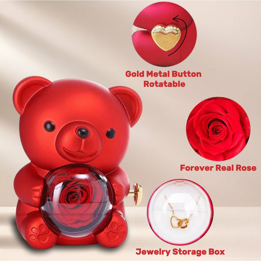 Introducing the Eternal Rose Teddy Bear Jewelry Box with 18K Gold-Filled Necklace!