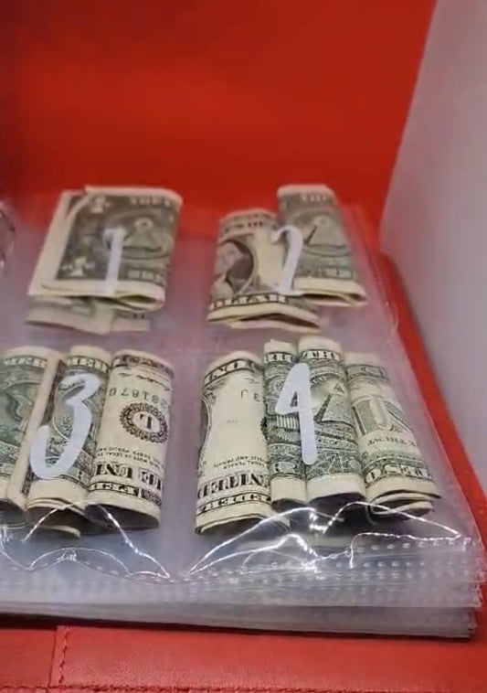 The binder comes with 100 pouches labeled 1-100, making it simple to track your savings progress. No more confusion or lost money!