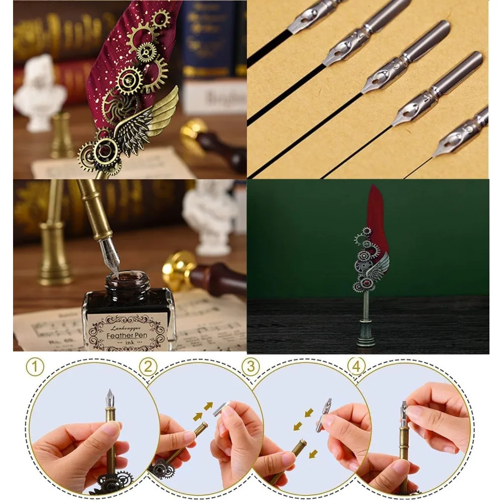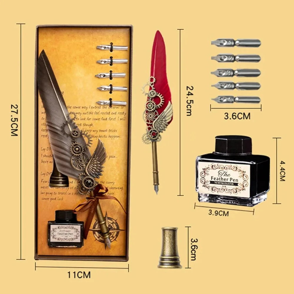 Map with Base Mechanical Wings Dipped in Water Pen Creative Birthday Holiday Gift Set Business Gifts Antique Feather Dip Pen